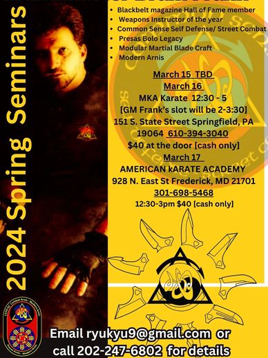 Black belt magazine Hall of fame member Bran Frank will be teaching Conceptual Modern Arnis with The CRMIPT, Presas Bolo and Modular blade.